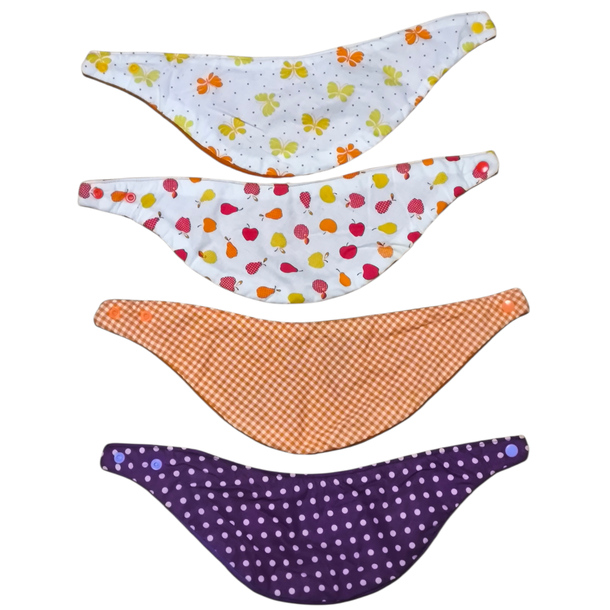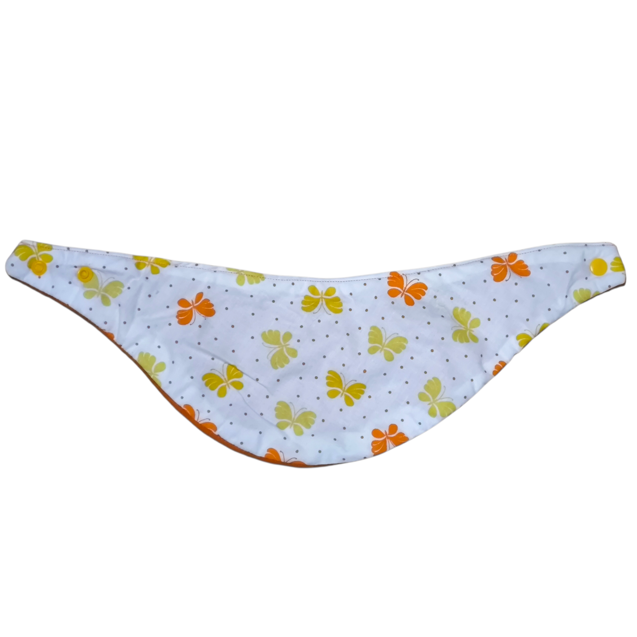 Halstuch größenverstellbar über zwei Druckknöpfe, eine Seite Fleece und die andere aus Baumwolle.