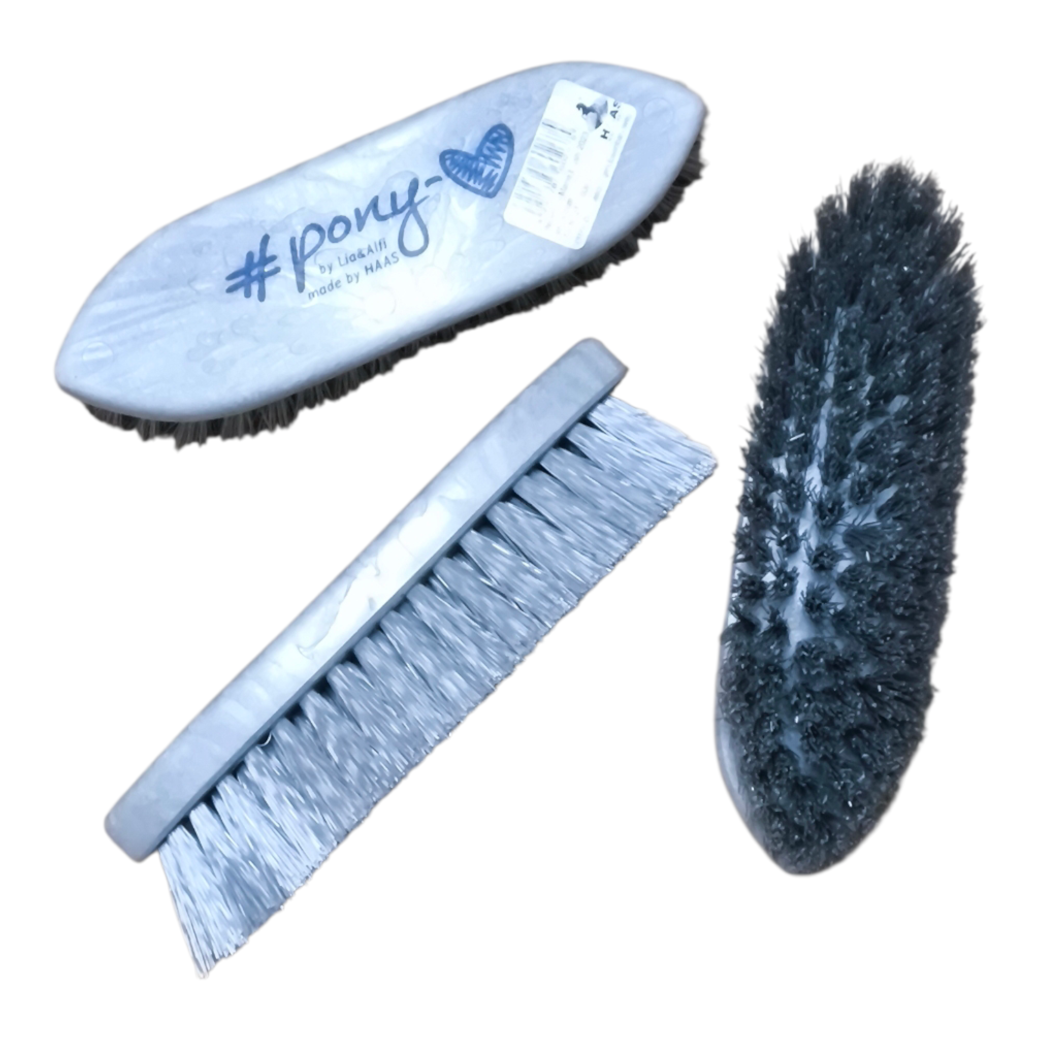 Ponylove Mähnenbürste by HAAS, mit 5 cm Kunststoffborsten, grauer Körper und Borsten. Blauer, Ponylove Aufdruck.