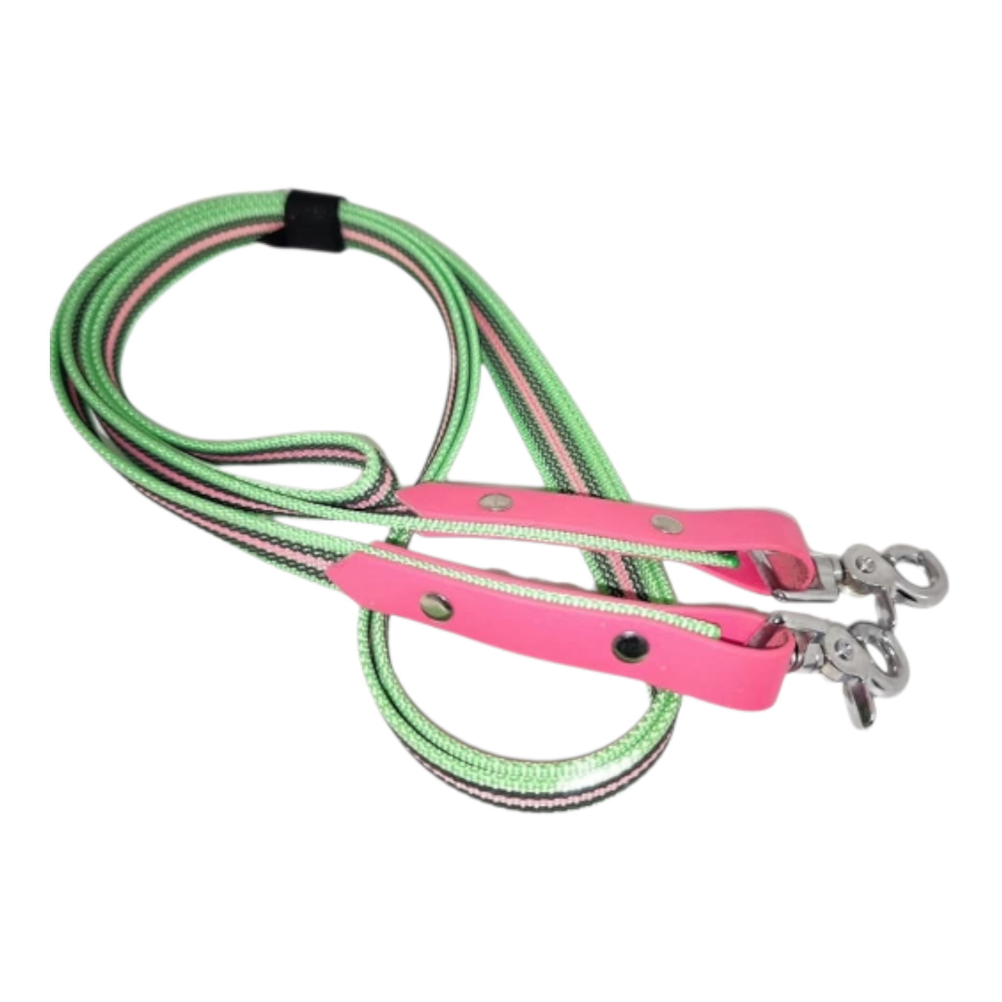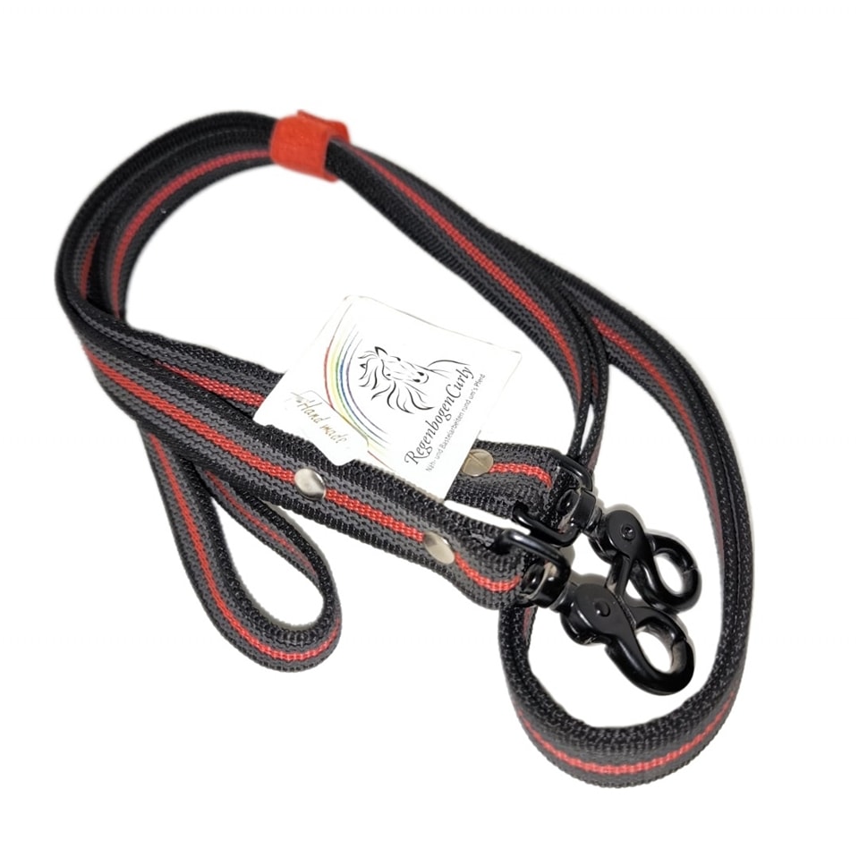 Unsere Zügel aus gummiertem Gurtband vereinen optimale Griffigkeit mit langlebiger Qualität. Das griffige Material sorgt auch bei Nässe für einen rutschfesten Halt, während die robusten Biothane-Enden für zusätzliche Stabilität und eine elegante Optik sorgen.